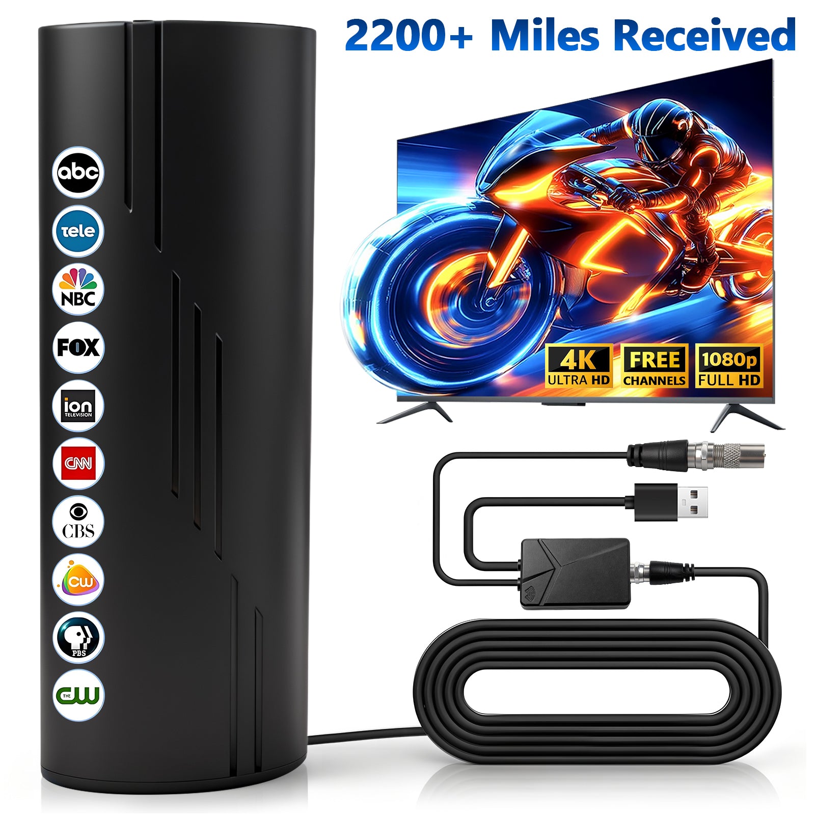 2025 Upgraded TV Antenna for Smart TV, Digital Indoor/Outdoor HD TV Antennas for Free Channels, 2200+ Miles Long Reception Range, Amplified Signal Booster, Support 4K 1080p