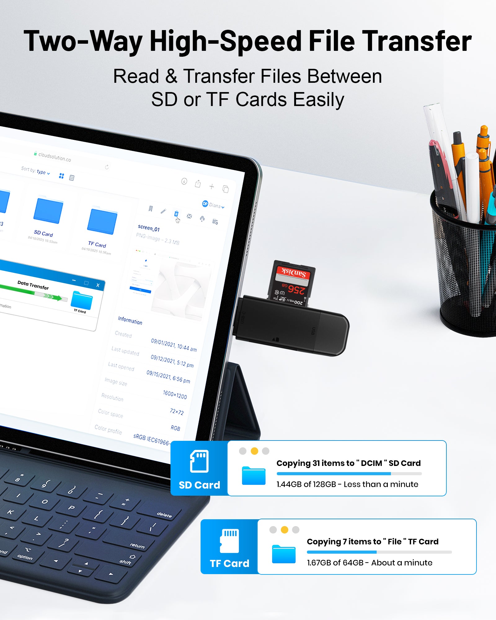 - Save Time, Work Smarter: Experience ultra-fast SD read speeds of up to 95MB/s and TF read speeds of 90MB/s. Transfer large files in seconds—perfect for photographers, videographers, and professionals who need efficiency.