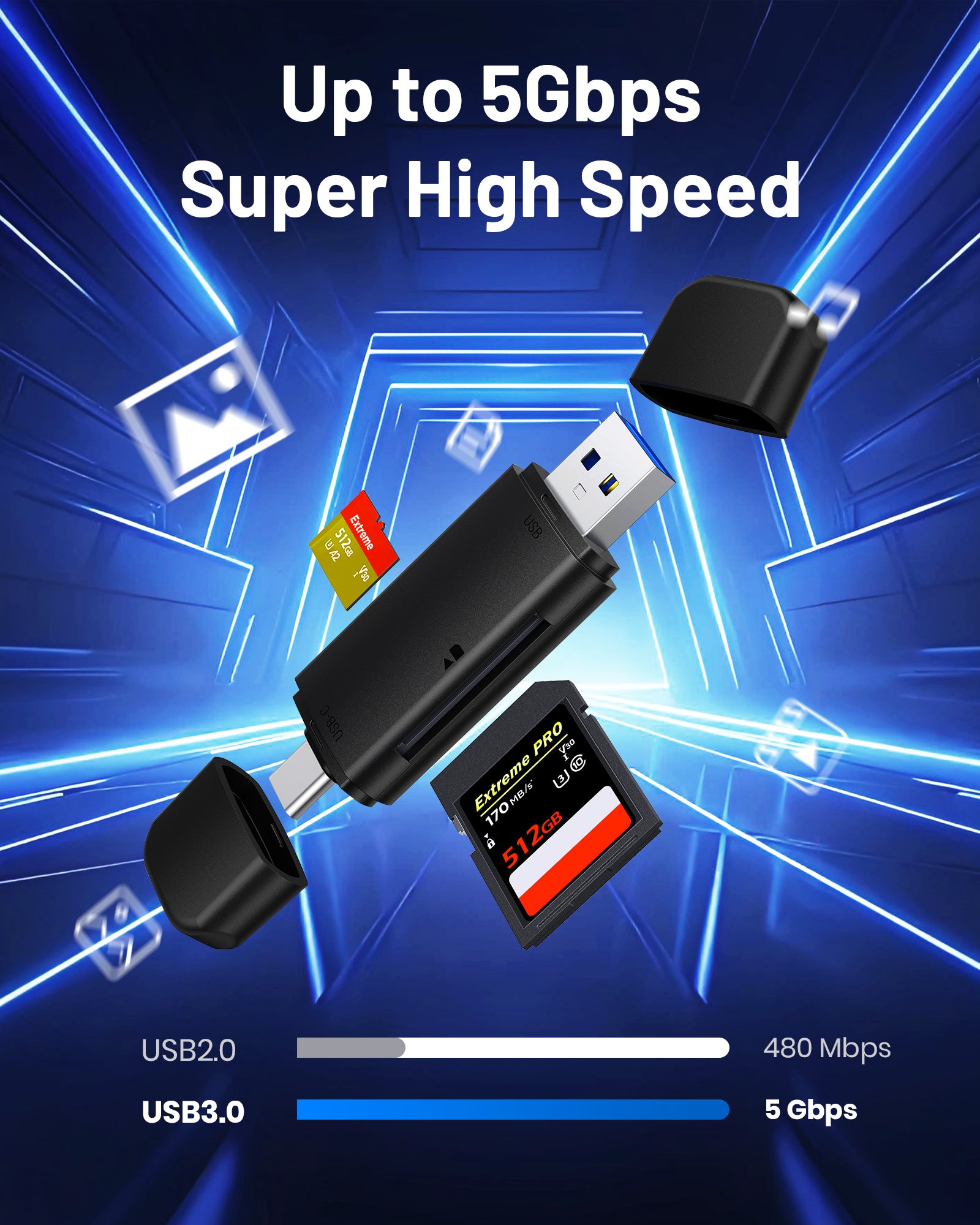 - High-Speed Card Access: Equipped with SD3.0 and TF3.0 interfaces, this card reader supports fast data transfer for SD or Micro SD cards. Easily expand your device’s storage and streamline file management.