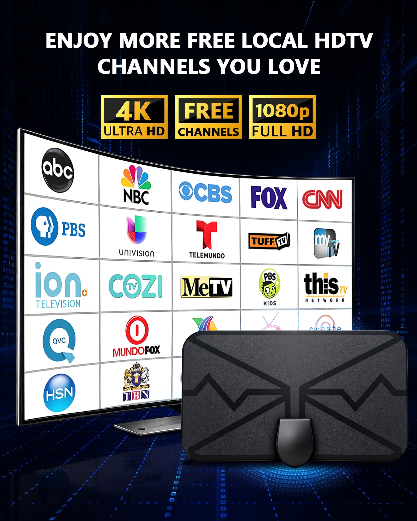 - Free Local Channels: Receive major networks like ABC, CBS, NBC, PBS, FOX and more, completely free. Say goodbye to expensive cable bill!